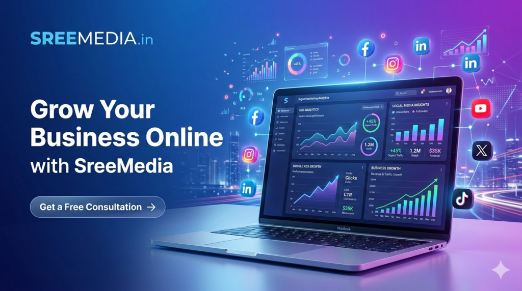 SreeMedia helps businesses increase online visibility, generate high-quality leads, and achieve sustainable growth through SEO, paid advertising, and strategic digital marketing solutions.